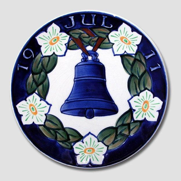 Aluminia Christmas plate,small, 1911 Year of issue: 1911 Motif: Bell Technique: Faience Designed by: Chr. Joachim Diameter: 6,2″ – 16 cm