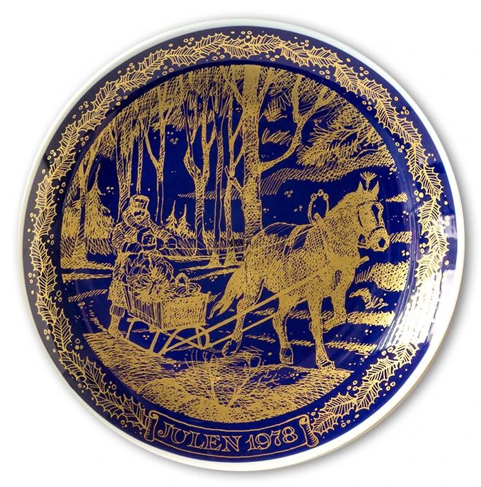 1978 Ravn Cobalt Blue Christmas Plate Horsedrawn Sledge
