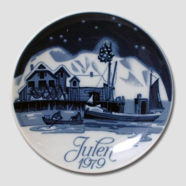 1979 Porsgrund Christmas plate, designed by Gunner Bratlie, with the title Home for Christmas. The technique used for the 1979 Porsgrund Christmas plate was underglazed.