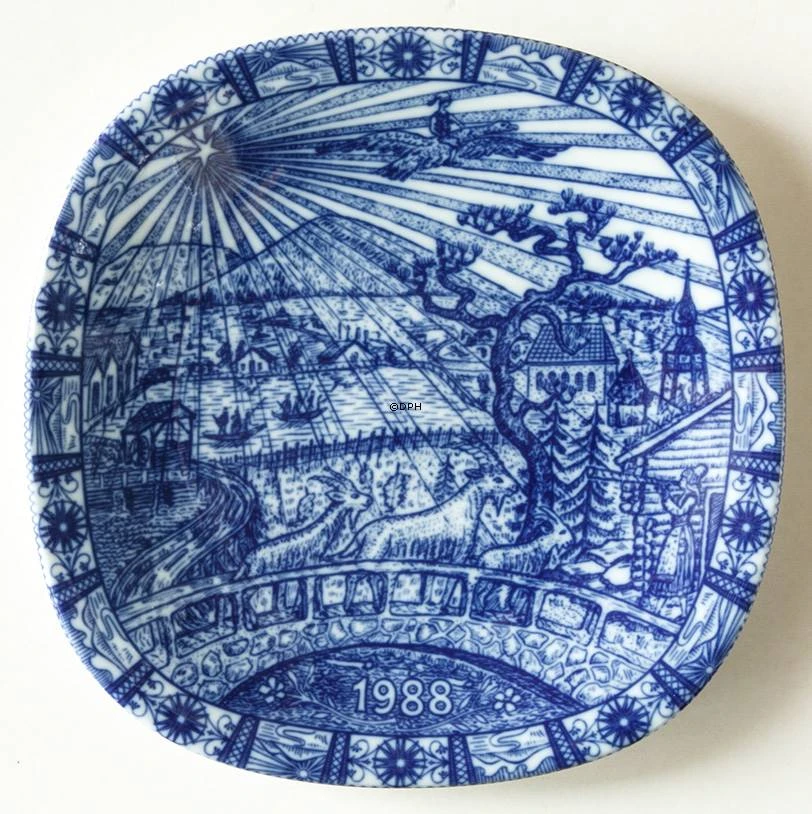 Rorstrand Christmas plate 1988 with motif from Selma Lagerlöf’s book Nils Holgersson’s journeys in Sweden. Technique: Underglazed Year of Release: 1987 Designed by: Gunnar Nylund Diameter: 7,5″ – 19,5 cm