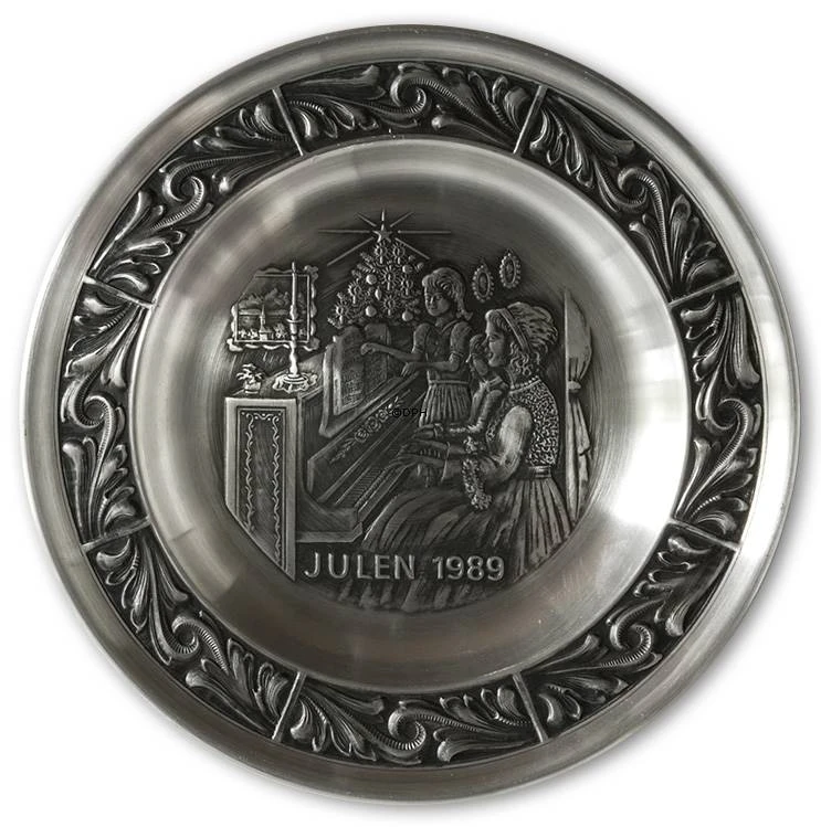 Astri Holthe produced Christmas plates in Norwegian pewter tin during the period 1974 to 2005. The tin plates has a patterned edge that remained the same through all the years. The motifs for the plates are classic Norwegian winter motifs and Christmas motifs. The plates have a nice look and mood that gives you the sensation of the Norwegian mountains in the depths of winter.