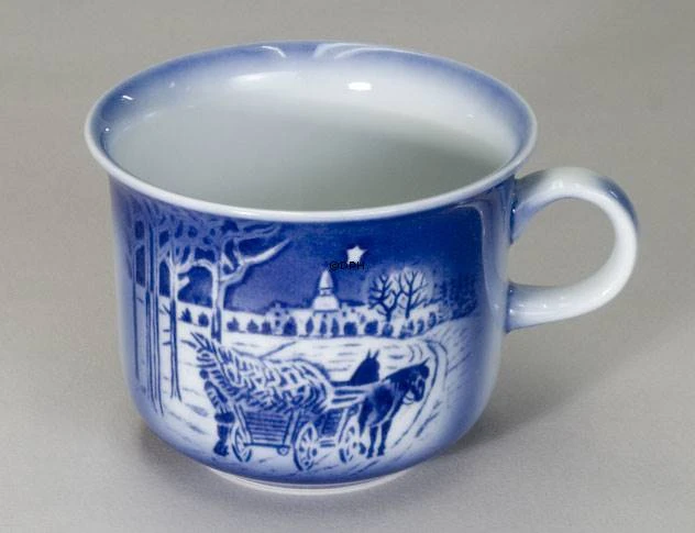 The motif of this 1998 Desirée annual cup WITHOUT saucer from The Porcelain Factory Desiree, also known as Désirée Denmark, Svend Jensen of Denmark, Old Copenhagen Blue is found in the Hans Christian Andersen fairytale The Gardener and the Squire. The 1998 Hans Christian Andersen Annual Cup had the same motif as the 1998 Svend Jensen Christmas plate. So the 1998 Desiree Annual Cup and the 1998 Desiree Christmas plate are actaully a beautiful coffee set with plate and cup. With inspiration in the Hans Christian Andersen fairytale “The Gardener and the Squire”, the designer Lis Torbøl painted a man, who is loading a Christmas Tree into the wagon. In the background we see one of the many Danish manor houses. Désirée started the Annual cup series in 1982 and ended it in 2001. So 20 different sets were made to complete a perfect coffee set. All motifs of the Hans Christian Andersen annual cups from Désirée are inspired by Hans Christian Andersen´s Fairy Tales.
