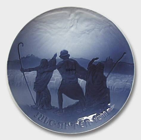 1911 Bing & Grondahl Christmas plate, designed by H. Molkte, has the title First it was sung by the Angels to the Shepherds in the Field. Bing & Grondahl’s Christmas plate from 1911 depicts the angel, that appeared before the shepherds in the field on the night that Jesus was born. The title of the plate was taken from the well-known Danish hymn writer B.S.Ingemann.