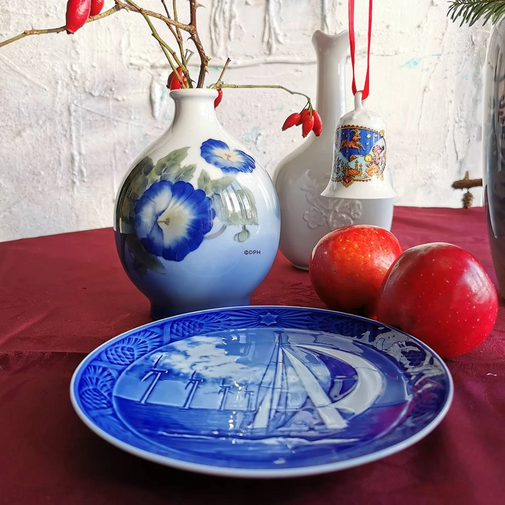 2012 Royal Copenhagen Christmas plate, designed by Sven Vestergaard, has the title Horns Reef. The designer has been inspired by the beautiful coastline around Denmark and the motif of the 2012 Royal Copenhagen Christmas plate depicts a sailboat passing Denmark’s largest windfarm, Horns Reef, in the North Sea. Horns Reef is situated out of the most westerly point of Denmark, Blåvands Huk. Denmark is known as ship nation and also one of the biggest manufacturers of windmills.