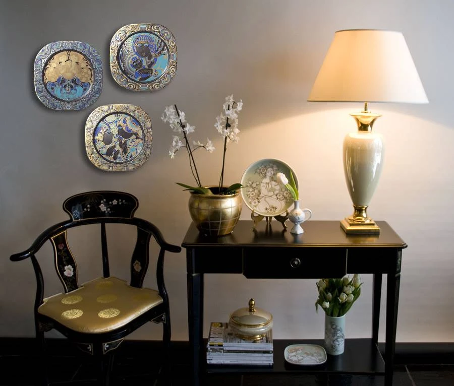 Bjorn Wiinblad Christmas plate, The Proclamation of Maria, 1977, produced by Rosenthal Designed by: Bjoern Wiinblad Technique: Crystal Diameter: 11″ – 29 cm