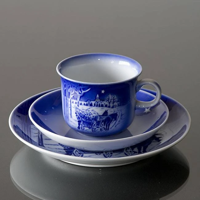 The motif of this 1998 Desiree Christmas plate from the Porcelain Factory Desiree, also known as DĂ©sirĂ©e Denmark, Svend Jensen of Denmark, Old Copenhagen Blue is found in the Hans Christian Andersen fairytale The Gardener and the Squire. With inspiration in the Hans Christian Andersen fairytale “The Gardener and the Squire”, the designer Lis TorbĂžl painted a man, who is loading a Christmas Tree into the wagon. In the background we see one of the many Danish manor houses. DĂ©sirĂ©e started the Christmas plate series in 1970 and ended in 2002. All motifs of the Hans Christian Andersen Christmas plates from DĂ©sirĂ©e were inspired by Hans Christian AndersenÂŽs Fairytales
